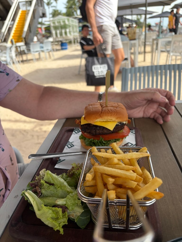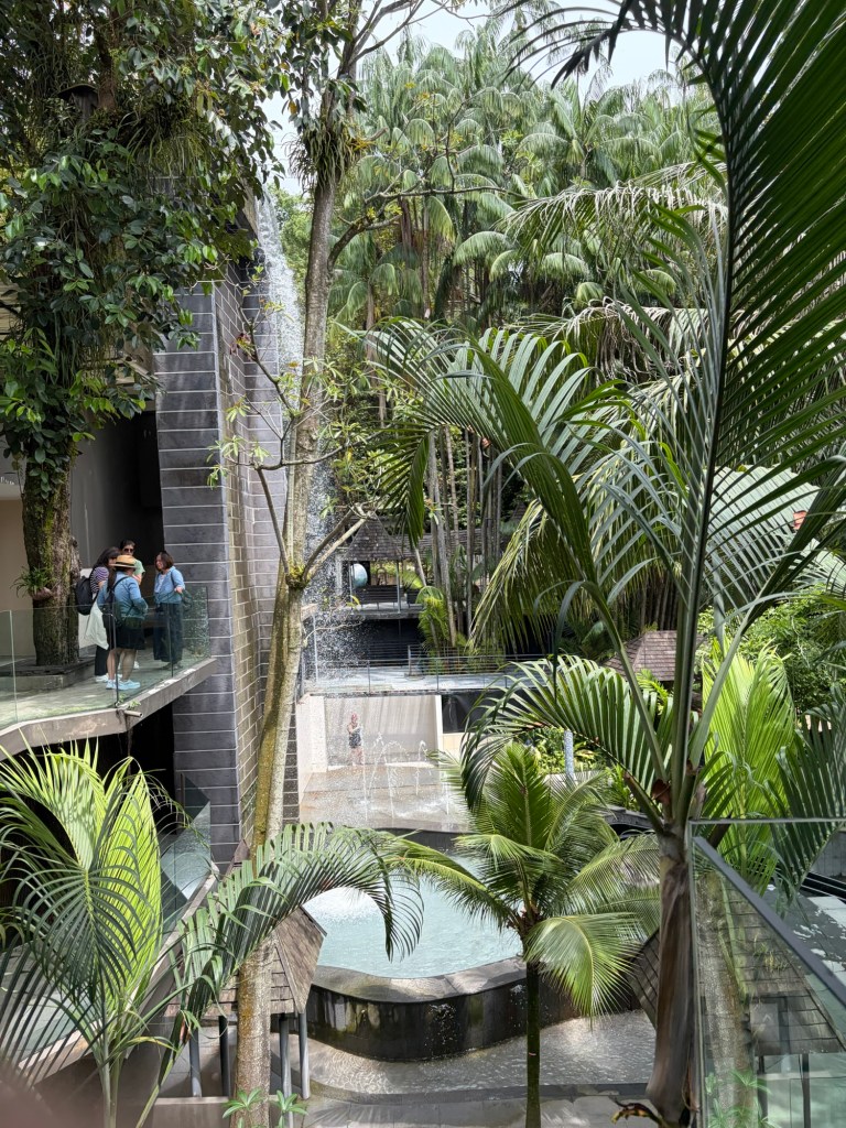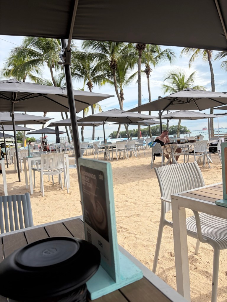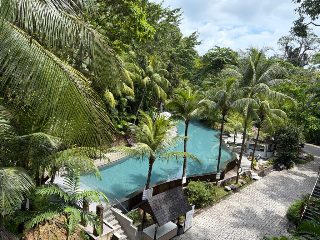 Things really went like clockwork that day. As we entered the baggage hall, I saw my suitcase coming round. Graham’s suitcase was not far behind. Nobody was interested in us at the customs check point and soon we were back landside. This time round we knew where we needed to go to get a Grab. I also knew better than to rely on GPS and manually entered our pickup location. We only had a short wait. This time round, we were heading to Sentosa. It took us around the same time that it had taken us to go to the city. Once we approached the entrance plaza for Sentosa, our driver asked me for our hotel confirmation. I was not prepared for this, and it took me a little while to locate this. I will know this for this year and will have it downloaded and in my holiday files. Still, I had managed to locate this by the time we came up to security and we were waved through. I realised very quickly that there is a lot more to Sentosa than I had given it credit for based on our half day visit in 2019. At that time, we had stuck to Resort World, which was truly horrible. I had managed to get a really good deal at an eco-resort at Siloso Beach, which is why we ended up at Sentosa. I am so glad that we did.