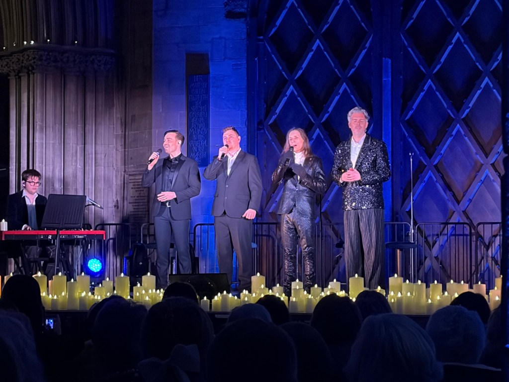The concert started at 19:30 with the support act, Qymira. Qymira is a very talented musician who was born in Hong Kong, but lives in the south of England. Some of the songs she performed I really liked. Others were not quite my cup of tea and one of the choices seemed to be downright bizarre for a cathedral. On the whole, I did like her set though. Shortly after she left the stage, Collabro came out. They were amazing when I saw them at the Bridgewater Hall in Manchester in 2022, but the performance that evening was next level. During this tour, they stripped things right back, concentrating on their harmonies with just a pianist to accompany them. The result was truly magical. They became famous or performing songs from musical theatre. However, we were more than halfway through the first set until they did the first song from a musical. The setlist was a really great mix including crossover pop, swing, hymns, an original song, and of course songs from various musicals. I was not familiar with all the songs they performed, but I loved every single one of them. The one that had be go weak at the knees was their version of The Prayer, which was originally sung by Andrea Bocelli and Celine Dion.