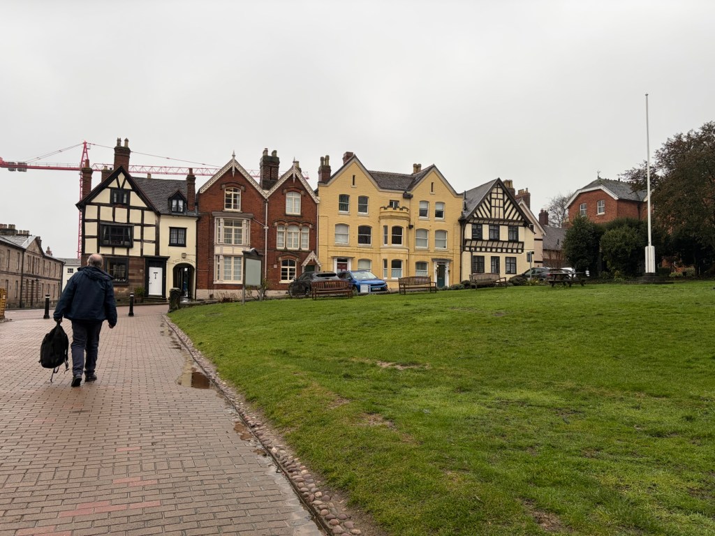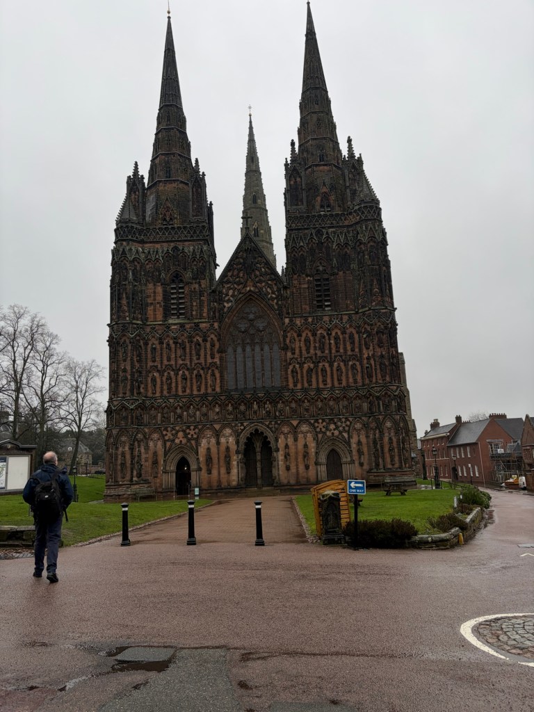 I do work quite close to Manchester Airport, and I was able to get on the train to Crewe at the airport. Graham had got on the same train at Manchester Piccadilly. The train was running slightly late, but we had plenty of time at Crewe to catch the onward train. I spotted Graham as soon as the train pulled into the station and went to join him. It was a cold and wet day, but thankfully there was a waiting room at Crewe station. The train to Lichfield also started in Crewe and it arrived quite early. As soon as the train was there, we got on. We had a nice smooth trip, and I spent most of the journey reading. I had planned to take an Uber from the station to our hotel. However, when we headed towards the exit, we noticed that there was a train to Lichfield City station leaving soon. Graham had worked in Lichfield for a while and said that it would only take about 15 minutes to walk from Lichfield City station to the Cathedral. This sounded good to me as finding the pickup point for Uber at a station is not always entirely straightforward. It only took 3 minutes on the train and despite the fact that it was still slightly damp and it was also dark, I realised that Lichfield is a very special place. I was glad that we would have the chance to explore this city properly the following day.