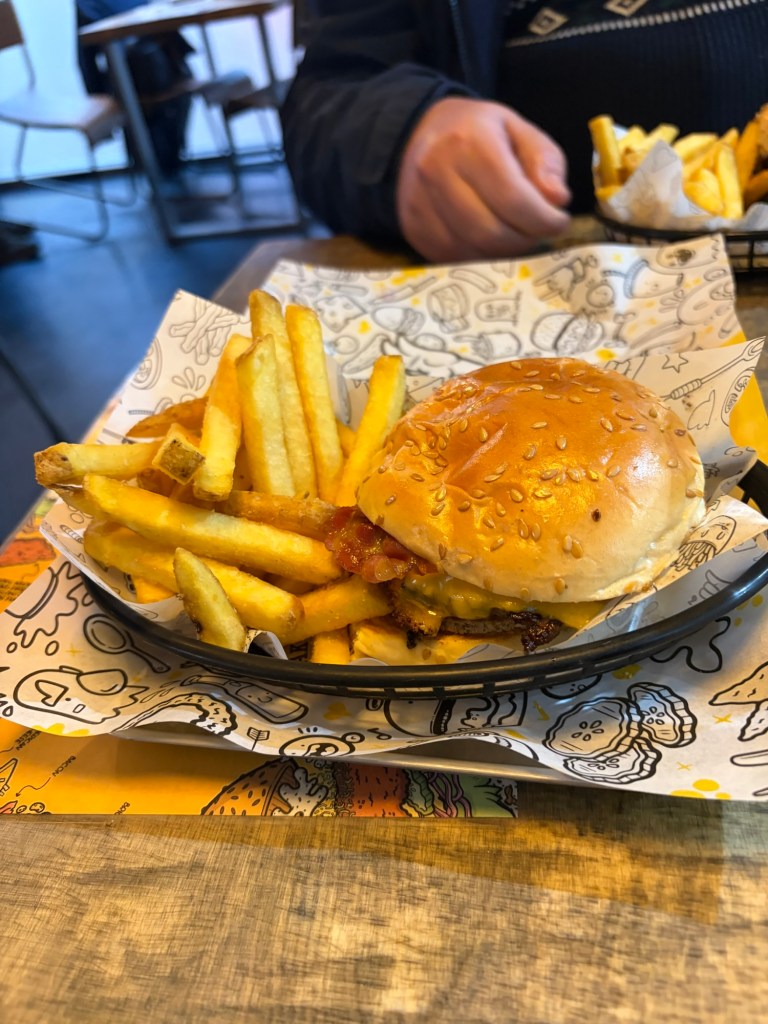 We had a look around the market that took place in front of St. Mary’s and explored the centre a little more. It started to rain more heavily again. We decided to get some lunch. We found a burger restaurant called Patty Freaks. This looked good to us. Graham had the Blue Job, which consisted of a smashed beef patty, blue cheese, caramelised onion chutney, garlic mayo, crispy onion, lettuce, pink onion, and gherkin. I decided to be adventurous. I had the Sweet Freaks, which consisted of a smashed beef patty, cheese, bacon, house sweet chili jam, and peanut butter. This sounded completely “out there”, but it was delicious. We both had some fries which were absolutely amazing. Graham had a Sprite and I had a Fanta. This was a good find.